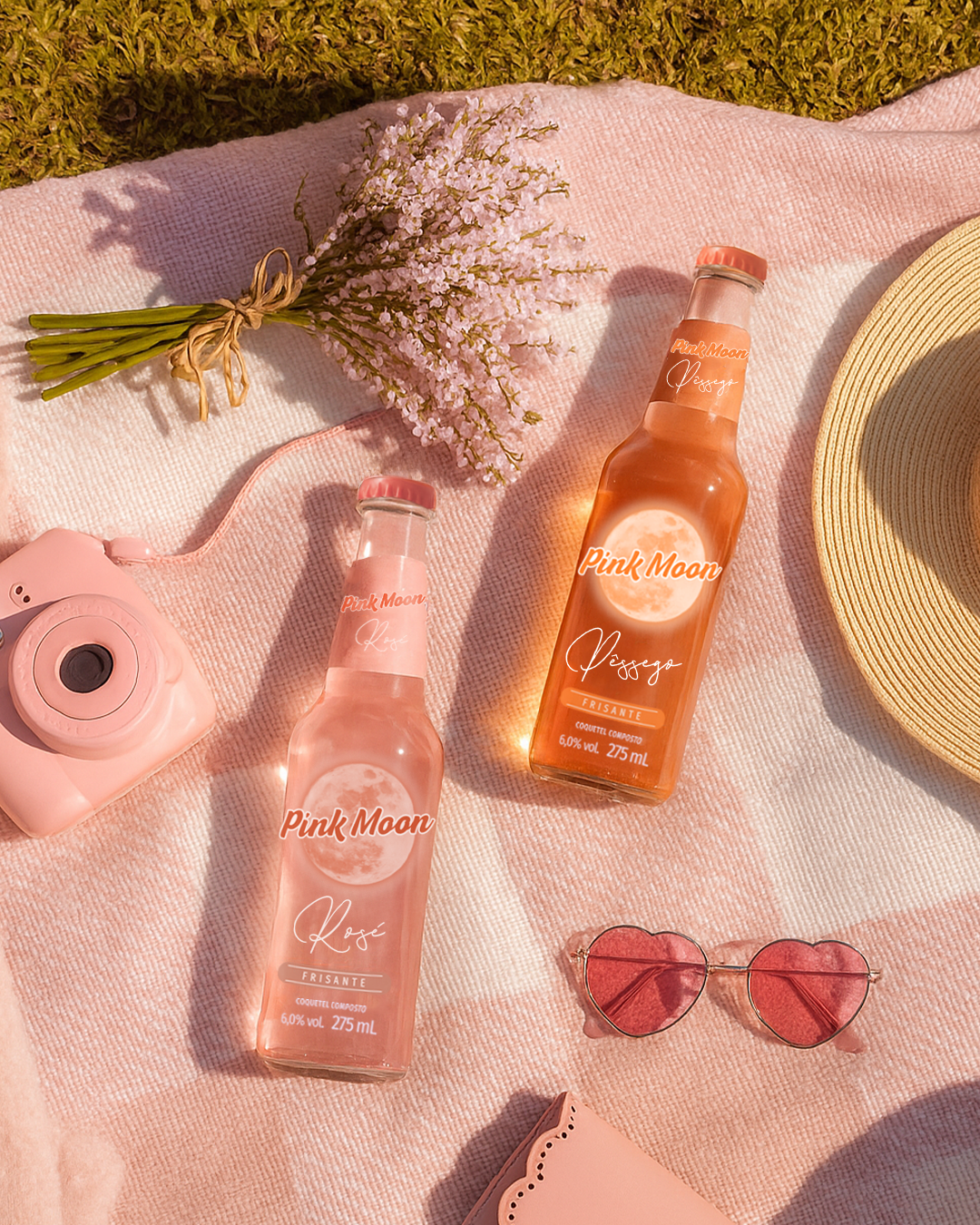O novo Pink Moon Pêssego Frisante chegou para encantar com seu sabor refrescante e leve, combinando o toque doce do suco de pêssego com o Vinho Branco Moscato Frisante. Com 6% de teor alcoólico na versão vidro 275 ml e 750 ml. Experimente e descubra o lado mais leve da vida!