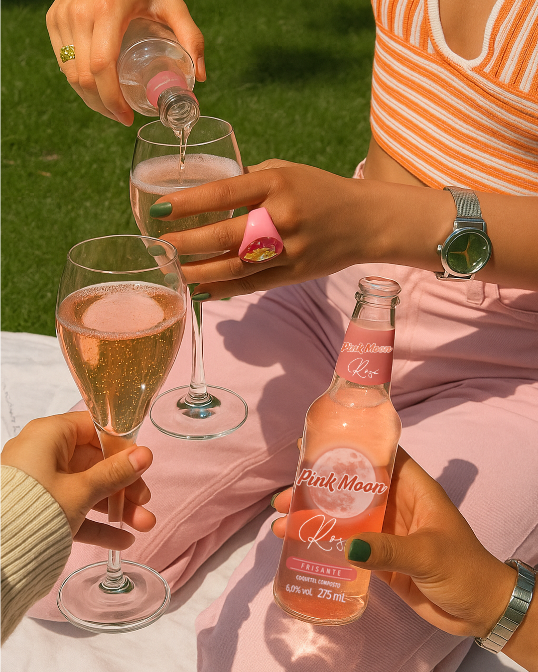 O novo Pink Moon Pêssego Frisante chegou para encantar com seu sabor refrescante e leve, combinando o toque doce do suco de pêssego com o Vinho Branco Moscato Frisante. Com 6% de teor alcoólico na versão vidro 275 ml e 750 ml. Experimente e descubra o lado mais leve da vida!